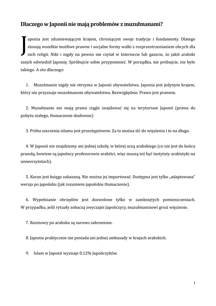 Dlaczego w Japonii nie mają problemów z muzułmanami?