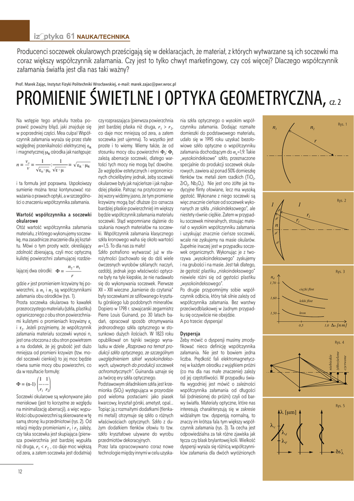znaczy im krótsza fala tym większy współczynnik załamania (rys. 3). Ta cecha jest