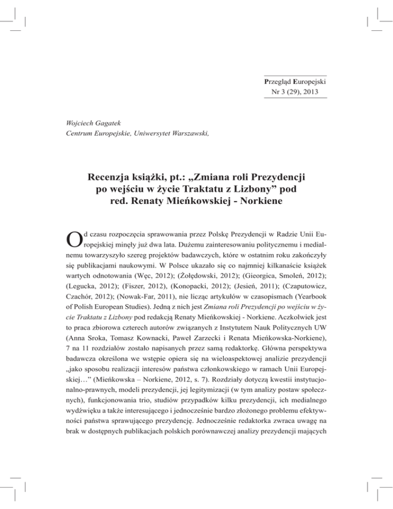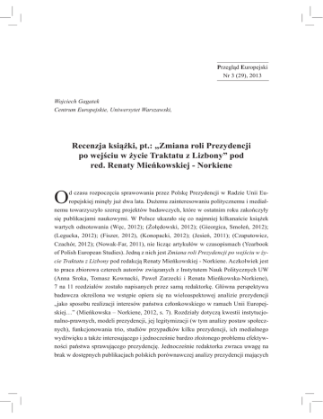Recenzja książki, pt.: „Zmiana roli Prezydencji po wejściu w życie
