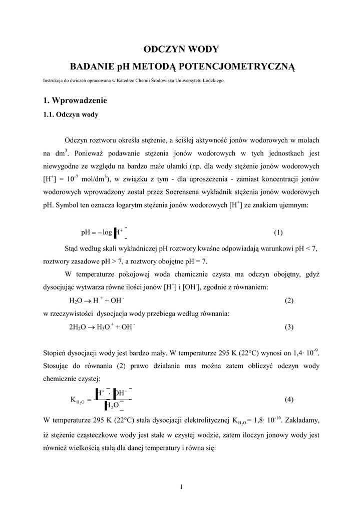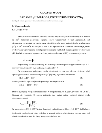 ODCZYN WODY BADANIE pH METODĄ POTENCJOMETRYCZNĄ