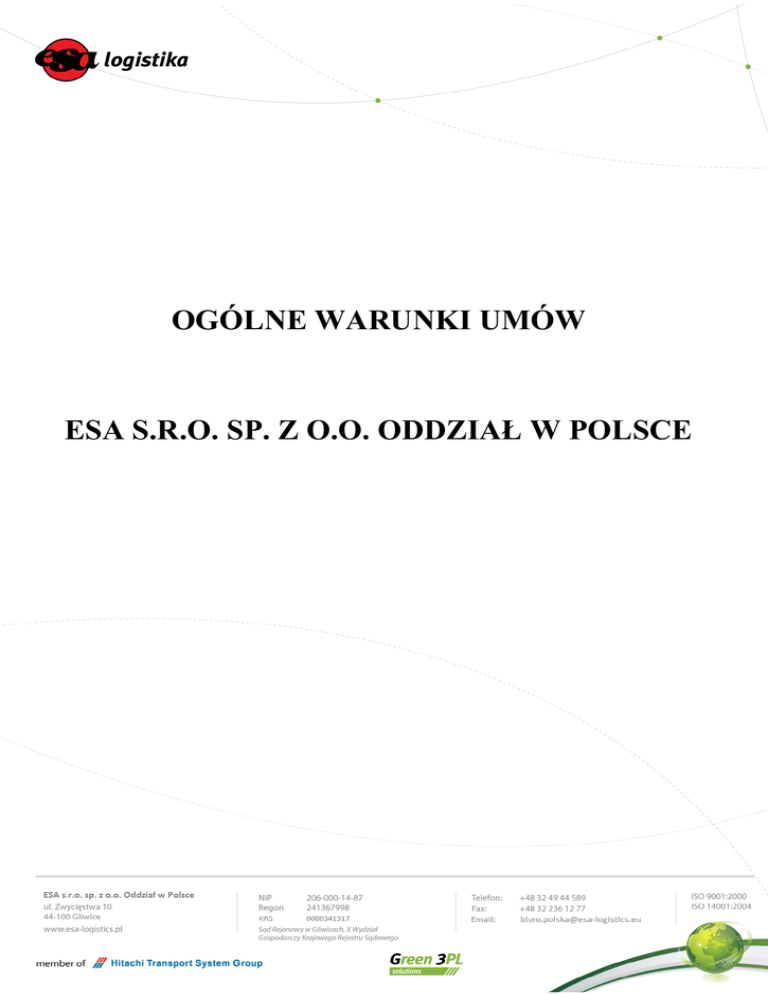 OGÓLNE WARUNKI UMÓW ESA S.R.O. SP. Z O.O. ODDZIAŁ W
