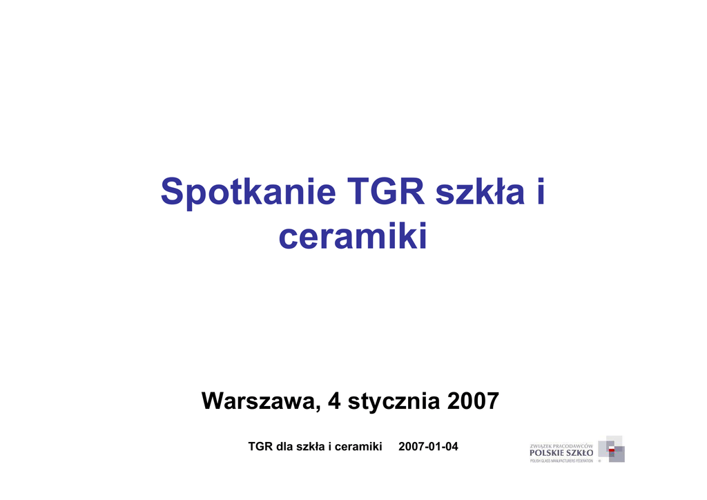 Prezentacja ze spotkania TGR szkła i ceramiki w dniu 4 stycznia 2007