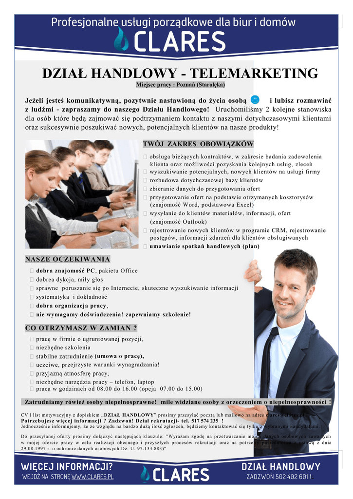 dział handlowy - telemarketing - Sprzątanie Poznań