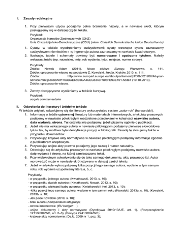 I. Zasady redakcyjne 1. Przy pierwszym użyciu podajemy pełne