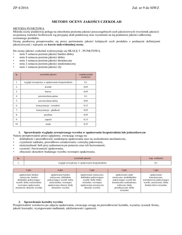 ZP 4/2016 Zał. nr 9 do SIWZ METODY OCENY JAKOŚCI CZEKOLAD