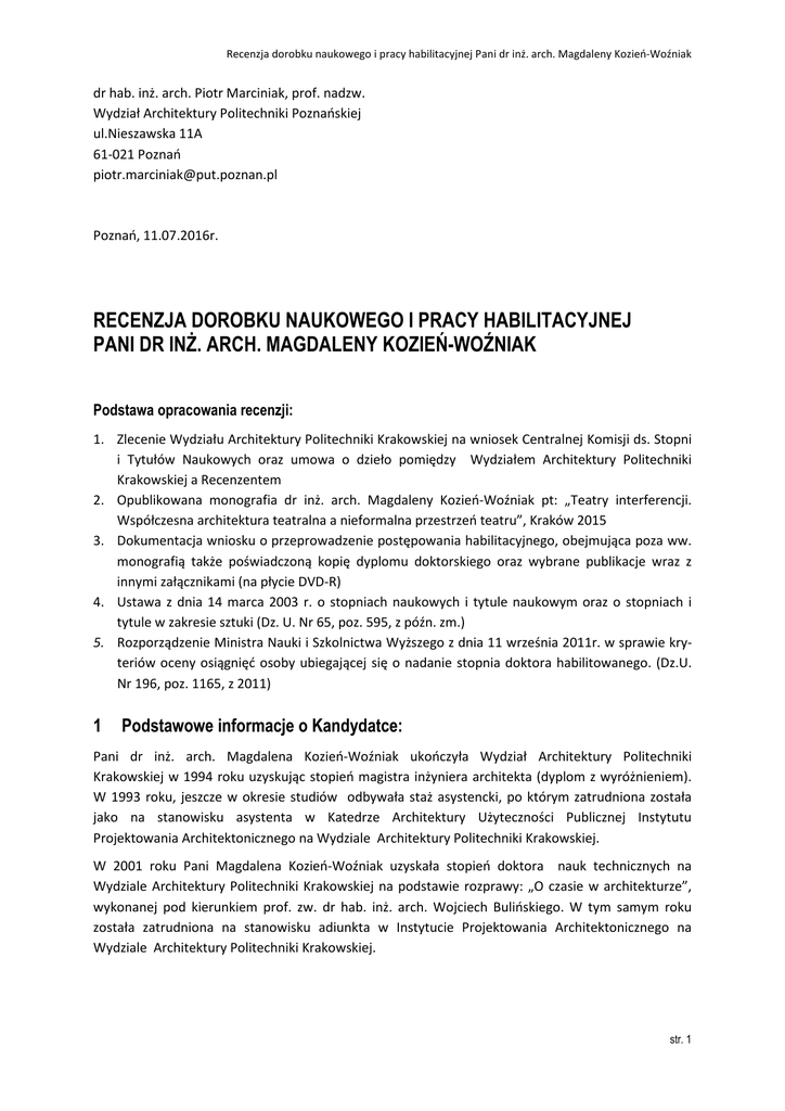 recenzja 2 - Wydział Architektury Politechniki Krakowskiej