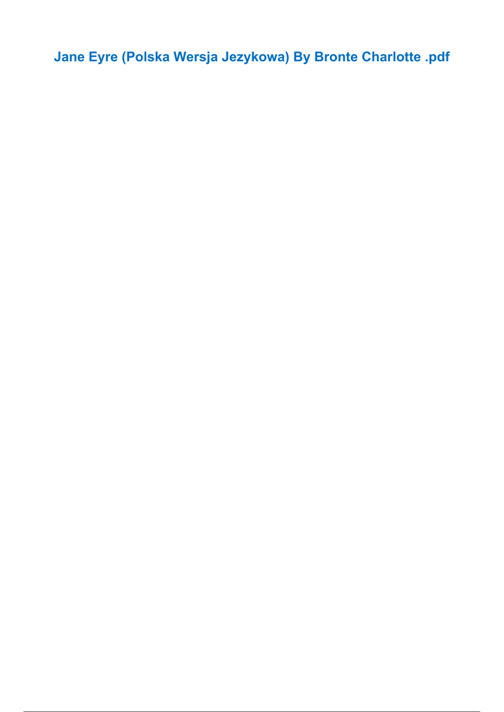Jane Eyre (Polska Wersja Jezykowa) By Bronte Charlotte