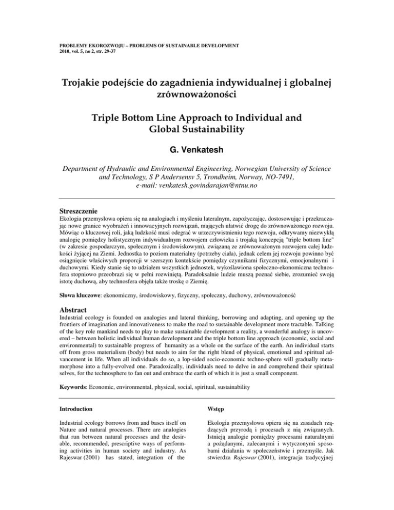 Venkatesh/Problemy Ekorozwoju/Problems of Sustainable Development 2/2010, 29-37