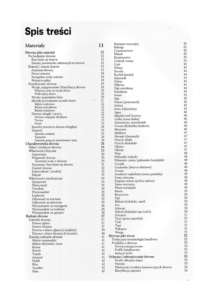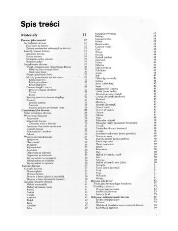 Spis treści Materiały Drewno jako materiał Pochodzenie drewna Stan lasów na świecie Zmiany powierzchni zalesionych na świecie Rozwój i wzrost drzewa Anatomia drewna Proces wzrostu Szczególne cechy wzrostu Rośnięcie gałęzi Pozyskiwanie drewna Wyrąb, przygotowanie i klasyfikacja drewna Właściwa pora na wyrąb drzew Wiek rębny drzew Wyrąb i gospodarka leśna Metody prowadzenia wycinki drzew Rębnia częściowa Rębnia przerębowa Rębnia stopniowa Drewno okrągłe i tarcica Drewno wstępnie obrobione Tarcica Fornir Sposoby przetarcia drewna okrągłego Suszenie Sposoby suszenia Suszarnie Suszenie gorącym powietrzem i parą Charakterystyka drewna Skład i struktura drewna Właściwości fizyczne Anizotropia Wilgotność drewna Zawartość wody w drewnie Pęcznienie i kurczenie się drewna Gęstość drewna Jednorodność i trwałość Palność Właściwości mechaniczne Sprężystość Plastyczność Twardość Wytrzymałość Łupliwość Odporność na ścieranie Odporność na uderzenia Wytrzymałość na rozciąganie Wytrzymałość na ściskanie Wytrzymałość na zginanie Rodzaje drewna Gatunki drewna Drzewa iglaste Drzewa liściaste Drewno z drzew iglastych (miękkie) Drewno z drzew liściastych (twarde) Katalog rodzajów drewna Mahoń wenezuelski Mahoń afrykański, tiama Brzoza Świerk Topola ' Amarant Paduk Klon Awodire Balsa 11 12 12 12 12 15 15 18 19 19 19 20 20 20 20 21 22 22 22 22 22 23 24 24 24 25 26 26 28 28 29 29 29 29 31 32 32 33 34 34 34 34 35 35; 35 35 36 36 36 37 37 37 37 39 40 41 41 41 41 41 41 41 42 42 42 42 Bukszpan zwyczajny Bubinga Cynamonowiec Mahoń Kasztanowiec Cedrzyk wonny Cedr Wiśnia Ewodia Kurbial (jatoba) Jakaranda Heban Dibetou Dąb ostrolistny Eukaliptus Jesion Buk Hikora (przeorzech) Imbuia Iroko (chlorofora) Jagua Migdałecznik laurowy Limba (sosna limba) Abramowiec amerykański Grusza afrykańska (makore) Mansonia Modrzew Meranti (damarzyk) Orzech wioski Orzech afrykański Okume Oliwka Wiąz Palisander indyjski Palisander czarny (palisander brazylijski) Gwajak Guatambu (drzewo słoniowe) Grusza Araukaria wąskolistna (sosna parańska) Sosna czerwona Daglezja zielona (jedlica zielona) Sosna zwyczajna Platan europejski Ramin Rewa-rewa Dąb Mahoń afrykański, sapeli Sen Sekwoja Mahoń afrykański sipo (utile) Sukupira Tamo (jesion japoński) Teak Tepa Wakapou Wenge Drewno jako towar Tradycyjna terminologia handlowa Produkty z drewna Drewno przygotowane Profile kształtowane Imitacje belek Ochrona i zabezpieczanie drewna Środki zabezpieczające Historia Właściwości środków konserwujących drewno Klasyfikacja zagrożeń 42 42 43 43 43 43 43 43 44 44 44 44 44 44 45 45 45 45 45 45 46 46 46 46 46 46 47 47 47 47 47 47 48 48 48 48 48 48 49 49 49 49 49 49 50 50 50 50 50 50 51 51 51 51 51 51 52 52 53 53 53 53 55 55 55 56 56 Klasyfikacja środków do konserwacji drewna Impregnaty solne Emulsje Środki rozpuszczalne w rozpuszczalnikach organicznych Naturalne, organiczne środki do konserwacji drewna Stosowanie środków konserwujących Zabezpieczanie prewencyjne Zabiegi stosowane na wilgotne drewno Zastępowanie naturalnej żywicy Dyfuzja Metody komplementarne Para + próżnia + impregnacja Zabiegi, którym poddaje się drewno suche Bez użycia autoklawu Impregnacja drewna w autoklawie Procesy z użyciem autoklawu, bez podwyższania ciśnienia Zabiegi terapeutyczne 58 58 58 59 60 60 61 61 61 61 62 62 62 62 63 64 64 Choroby i szkodniki Wady drewna okrągłego Mimośrodowość rdzenia lub słojów rocznych Gnijący biel Nierównomierna szerokość słojów Zgnilizna wewnętrzna Pęknięcia okrężne Pęknięcia mrozowe Pęknięcia rdzeniowe Opuklina Efekty inwazji ksylofagów Spuszczel pospolity (Hylotrues bajulus) Miazgowiec brunatny (Lyctus brunneus) Kołatek domowy [Anobium punctatum) Termity [Reticulitermes fucifagus) Trzpienniki Atak grzybów Grzyby rozkładające drewno Barwice drewna 65 65 65 65 65 65 65 66 66 66 66 66 67 67 67 68 68 68 68 Produkty wytwarzane fabrycznie Płyty stolarskie Sklejki Sklejki tradycyjne Sklejki o większej grubości Sklejka powlekana żywicą fenolową (szalunkowa) Sklejka z powłoką przeciwpoślizgową Sklejka tłumiąca drgania Impregnowana żywicą sklejka o podwyższonej gęstości Impregnowana żywicą sklejka na panele podłogowe Impregnowana żywicą sklejka fasadowa Impregnowana żywicą sklejka ognioodporna Sklejka kuloodporna Płyty wiórowe i pilśniowe Płyty pilśniowe średniej gęstości (MDF) Płyty pilśniowe twarde (HDF) Płyty wiórowe Rurowe płyty wiórowe Rurowe płyty wiórowe stanowiące izolację akustyczną Płyta wiórowo-cementowe (suprema) Płyty z wiórów drzewnych Inne rodzaje płyt drewnopochodnych Płyty o równoległym splocie (PSL) lub płyty paralłam (pierwsza handlowa nazwa) Płyty plastyczne Płyty wielowarstwowe Panele drewnopochodne do wyposażenia we wnętrz Okładziny fasad 69 69 69 70 70 70 70 70 71 71 71 71 71 72 72 72 72 73 73 73 73 74 6 74 74 74 75 75 Materiały podłogowe Mozaika podłogowa Podłogi z drewna litego Podłogi lamelowe Podłogi warstwowe 75 75 76 77 78 Narzędzia Narzędzia ręczne Przyrządy pomiarowe Węgielnice (kątowniki) Liniały Liniały stalowe Liniały warsztatowe Kątownik nastawny Półkąt Suwmiarka Narzędzia do znaczenia Szydło Ołówek stolarski Jak sobie poradzić bez linijki Narzędzia do zaznaczania Cyrkle i cyrkle podziałowe Narzędzia do cięcia Piły ręczne Piła ramowa Piła ukośna Piła płatnica Piła poprzecznica Piła grzbietnica Piła włosowa Piła otwornica i piła lisica Piła przyrznica (do forniru) Piły z wymiennymi brzeszczotami Narzędzia z krawędzią tnącą Prowadzone narzędzia skrawające: (strugi) Strugi Strug zdzierak Strug spustnik Strug gładzik Strugi z wypukłą stopą (kręgadła) Strug wręgownik (kątnik) Stgrugi profilowe Strug ząbkowany (zębak) Strugi żelazne Strug spust (rubanek) Strug żłobkujący Strug profilowy (kształtownik) Strug wpustnik Strug do połączeń na pióro i wpust Nar