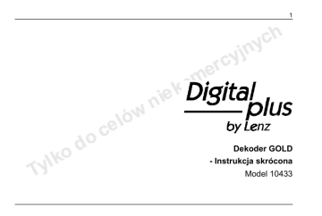 1 Dekoder GOLD - Instrukcja skrócona Model 10433 2 Dekoder GOLD – Instrukcja skrócona Instrukcja dla potrzeb hobbystycznych, nie autoryzowana przez firmę Lenz Elektronik. Na podstawie oryginału w języku angielskim opracował „Blue”. Używanie i rozpowszechnianie instrukcji w celach komercyjnych bez zgody autora przekładu jest zabronione. Wszelkie nazwy występujące w tekście są lub mogą być znakami towarowymi odnośnych organizacji i producentów, w szczególności firmy Lenz Elektronik. W stosunku do oryginału wprowadzono następujące zmiany: – poprawiono i uzupełniono rysunek 2 z tabelą – poprawiono błędy i nieścisłości na stronach 31..36 wersji oryginalnej (rozdział 5.), – zastosowaną jednolitą numerację bitów w CV od 0 (najmniej znaczący) do 7 (najbardziej znaczący). Tekst w szarych ramkach nie pochodzi z oryginału i zawiera własne uwagi i dodatki tłumacza. Edycja 2, listopad 2006. 3 Dane techniczne Maksymalny łączny ciągły prąd obciążenia wszystkich wyjść Maksymalny prąd wyjściowy silnika ciągły/chwilowy 1.0 A 1.0 A / 1.8 A Maksymalny prąd wyjść funkcyjnych A, B, C, D 200 mA Maksymalny łączny prąd wyjść funkcyjnych 500 mA Zakres adresów lokomotyw Liczba stopni prędkości Wymiary 1-1000 14, 27, 28, 128 23,0 × 16,5 × 6,5 mm 4 Rys. 1. Podłączenie dekodera przy użyciu przewodów. Dekoder GOLD – Instrukcja skrócona 5 Złącze NEM652 (widok od dołu wtyku) Wyprowadzenie Kolor przewodu Znaczenie 1 Pomarańczowy Podłączenie silnika 2 Żółty Wyjście funkcyjne B - światła tylne (-) 3 Zielony Wyjście funkcyjne C (-) 4 Czarny Lewa szyna 5 Szary Podłączenie silnika 6 Biały Wyjście funkcyjne A - światła przednie (-) 7 Niebieski Wspólny biegun dla wyjść funkcyjnych (+) 8 Czerwony Prawa szyna - Fioletowy Wyjście funkcyjne C (-) Rys. 2. Przewody i wyprowadzenia złącza NEM652. 6 Rys. 3. Interfejs SUSI. Rys. 4. Podłączenie modułu podtrzymania zasilania. Dekoder GOLD – Instrukcja skrócona 7 Artykuł nieodpowiedni dla dzieci poniżej 3 lat z powodu możliwości połknięcia drobnych elementów. Nieprawidłowe obchodzenie się może spowodować skaleczenia z powodu kontaktu z ostrymi krawędziami i wystającymi elementami. Tylko do użytku w suchych pomieszczeniach. Producent zastrzega sobie prawo do wprowadzania ulepszeń technicznych i zmian w produkcie. Producent nie ponosi odpowiedzialności za bezpośrednie i pośrednie straty wynikłe z nieprawidłowego zastosowania produktu, nieprzestrzegania instrukcji, zastosowania transformatorów i innego sprzętu nie dopuszczonego do użytku z modelami kolejowymi, poddanego przeróbkom lub uszkodzonego. Producent nie jest odpowiedzialny za uszkodzenia wynikłe z nieautoryzowanych modyfikacji sprzętu, użycia siły, przegrzania lub nadmiernej wilgotności. Wszystkie takie przypadki spowodują unieważnienie gwarancji. 8 Dekoder GOLD – Instrukcja skrócona 9 1. Zasady bezpieczeństwa Dekodery Digital plus są przeznaczone do używania tylko z systemem Lenz Digital plus lub innymi systemami sterowania cyfrowego z certyfikatem zgodności NMRA. W przypadku wątpliwości co do zgodności systemów należy zwrócić się do dostawcy sprzętu. Przekroczenie dopuszczalnych natężeń prądów wyjściowych może spowodować uszkodzenie dekodera. W żadnym przypadku elementy dekodera nie mogą dotykać metalowych części lokomotywy, gdyż może to spowodować zwarcie, którego skutkiem może być uszkodzenie dekodera. Nie należy owijać dekodera taśmą izolacyjną, gdyż w ten sposób powstrzymuje się przepływ powietrza wokół dekodera. Można natomiast użyć taśmy izolacyjnej do oklejenia metalowych elementów nadwozia lokomotywy w celu uniknięcia zwarcia bez przeszkadzania w chłodzeniu dekodera. Do przymocowania dekodera można użyć taśmy dwustronnie klejącej. Lokomotyw wyposażonych w dekodery Digital plus nie należy używać na makietach z podwójnym, niezależnym zasilaniem z trakcji napowietrznej i z szyn, ani przy zasilaniu prądem stałym, ani w systemach DCC, gdyż może to spowodować powstanie napięcia o podwójnej wartości i w konsekwencji uszkodzenie dekodera. Nie wolno przekraczać maksymalnych dopuszczalnych prądów dekodera określonych w danych technicznych dekodera. Przed zainstalowaniem dekodera należy sprawdzić lokomotywę przy zasilaniu prądem stałym, aby zweryfikować jej sprawność przed modyfikacją. Należy wymienić zużyte odbieraki prądu, szczotki silnika i przepalone żarówki. Tylko sprawna lokomotywa może poprawnie funkcjonować ze sterowaniem cyfrowym. 10 Dekoder GOLD – Instrukcja skrócona 2. Instalacja dekodera GOLD przy użyciu wiązki przewodów Przed modyfikacją połączeń w lokomotywie należy zanotować, które wyprowadzenie silnika jest dołączone do prawej szyny, a które do lewej. Dzięki temu nie trzeba będzie później przeprowadzać prób i powtórnie lutować przewodów w celu osiągnięcia właściwego kierunku jazdy. Po usunięciu połączeń silnika szczotki silnika muszą być całkowicie odizolowane od obu szyn i nie mogą wykazywać różnic potencjałów względem szyn. Oznacza to, że wyprowadzenia silnika nie mogą pozostać połączone z odbierakami prądu lub obudową lokomotywy. Należy zwrócić uwagę, aby takie połączenie nie powstało również po założeniu zewnętrznej części obudowy lokomotywy. W przypadku wątpliwości co do połączeń prosimy skontaktować się z serwisem. Montaż dekodera rozpoczynamy od podłączenia odbieraków prądu: • przewód czerwony – do odbieraków z prawej strony lokomotywy patrząc w kierunku jazdy, • przewód czarny – do odbieraków z lewej strony lokomotywy patrząc w kierunku jazdy. Następnie łączymy dekoder z silnikiem: • przewód pomarańczowy – do wyprowadzenia silnika podłączonego uprzednio do odbieraków z prawej strony lokomotywy patrząc w kierunku jazdy, • przewód szary – do wyprowadzenia silnika podłączo