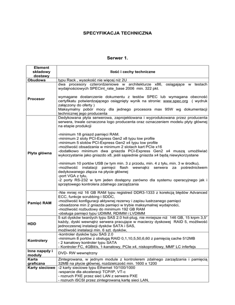 SPECYFIKACJA TECHNICZNA Serwer 1.