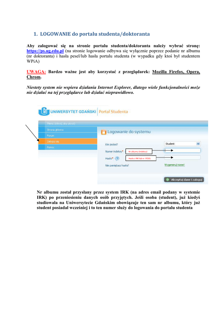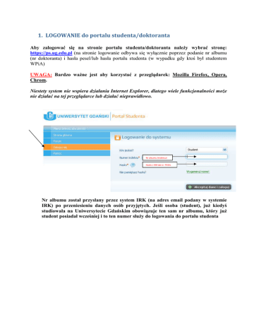 1. LOGOWANIE do portalu studenta/doktoranta