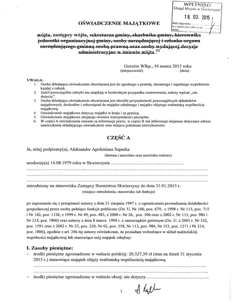 Oświadczenie majątkowe.
