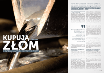 Produkcja stopów aluminiowych, polegająca na recyklingu, pozwala znacząco obniżać koszty wytworzenia. Między innymi dzięki opanowaniu do perfekcji technologii przetwarzania złomów aluminiowych w pełnowartościowe stopy Grupa Alumetal stopniowo staje się jednym z największych producentów wtórnych stopów odlewniczych w Europie. Co jest ważne przy wyborze producenta stopów aluminiowych? Taki podmiot powinien posiadać wiele jednostek produkcyjnych na wypadek awarii. To bardzo ważne, dlatego że brak dostawy lub wadliwy produkt może powodować przestój linii produkcyjnej klienta, co z kolei kosztuje dziesiątki, a nawet setki tysięcy euro dziennie. Do tego dochodzi niezawodność, która wiąże się np. z wdrożeniem i przestrzeganiem systemu jakości ISO TS 16949 oraz wypracowany system dostaw. Chodzi o to, że solidny producent musi Kupują złom Mariusz Krysiak i robią na tym niezły biznes Proszę sobie wyobrazić, że jeszcze kilka lat temu udział części aluminiowych w samochodzie wynosił poniżej 100 kg, a przewiduje się, że po roku 2020 będzie to już ponad 200 kg większymi odbiorcami są globalni producenci części samochodowych i samochodów, tacy jak Grupa VW, Grupa Nemak (największy na świecie producent głowic silników), Grupa Federal-Mogul, Mahle i Kolbenschmidt – najwięksi na świecie producenci tłoków silników. Nasze produkty wykorzystywane są również w produkcji głowic do silników, obudowy skrzyni biegów, obudowy przekładni kierowniczych i wielu innych elementów. A poza motoryzacją – np. w elementach pralek, maszynek do mięsa, innych sprzętach AGD, elementach dla elektroniki, częściach dla różnego rodzaju maszyn. Odpowiadając na pytanie, spadek sprzedaży samochodów w Europie w sposób oczywisty wpływa na trudności w zawieraniu kontraktów i w konsekwencji na zwiększanie sprzedaży. My mamy jednak zdywersyfikowaną bazę klientów. Dodatkowo posiadamy też atut, który pozwala nam skutecznie konkurować z firmami zachodnioeuropejskimi, mam na myśli bardzo niski koszt przerobu. Dlatego z optymizmem patrzymy na możliwość realizacji naszych celów. współpracować z solidnym przewoźnikiem, który wyprodukowany towar dostarczy na czas. I my takim solidnym producentem stopów aluminiowych jesteśmy. A jak chcecie te cele realizować? Cele będą zrealizowane poprzez zdywersyfikowaną bazę odbiorców, wykorzystywanie lokalizacji zakładów, które są usytuowane w niewielkiej odległości od naszych kluczowych klientów, zróżnicowaną technologię produkcji i w konsekwencji zwiększanie efektywności produkcji, dyscyplinę kosztową, tzn. utrzymywanie kosztów przerobu na obecnym, bardzo niskim poziomie, dalsze aktywne działania handlowe, mające na celu pozyskanie kolejnych klientów. I pewnie można to uwiarygodnić konkretnymi liczbami… Owszem. W 2012 r. jako Grupa Alumetal sprzedaliśmy blisko 100 tys. ton stopów aluminiowych. Budżet na rok 2013 zakłada sprzedaż blisko 125 tys. ton, a plan na rok 2014 przewiduje sprzedaż 148 tys. ton. To ma pozwolić stać się trzecim co do wielkości producentem wtórnych stopów odlewniczych w Europie. Mówi pan tak, jakby firma stała przed ogromną szansą na coś wielkiego. Dobra przyszłość aluminium wtórnego i w konsekwencji wzrost jego konsumpcji w najbliższych latach to ogromna szansa. Proszę sobie wyobrazić, że jeszcze kilka lat temu udział części aluminiowych w samochodzie wynosił poniżej 100 kg, a przewiduje się, że po roku 2020 będzie to już ponad 200 kg. I nie przeszkodził w tym spadek sprzedaży samochodów Europie? Grupa Alumetal posiada aktualnie ponad 140 aktywnych klientów i ponad 100 aktywnych dostawców. Rzeczywiście, w przeważającej większości klienci reprezentują przemysł motoryzacyjny (94% udziału w sprzedaży w 2012 r.), ale stopy aluminiowe dostarczamy również dla przemysłu AGD, elektronicznego, maszynowego, oświetleniowego, hutnictwa stali oraz producentów grzejników. Naj- Ponadto do produkcji stopów z aluminium wtórnego zużywa się tylko 5% energii, 20 razy mniej niż do produkcji tej samej ilości aluminium pierwotnego. Dodatkowo nasz region, Europa Centralna i Wschodnia, z roku na rok zwiększa swoje znaczenie, ponieważ niższe koszty wytworzenia powodują, że wiele nowych inwestycji jest lokowanych w naszym regionie, a istniejące zakłady zwiększają swoje moce produkcyjne. Polski Przemysł – maj 2013 | 75 O grupie Alumetal Alumetal to największa na polskim rynku i zaliczana do największych w Europie (obecnie nr 5) firma, która przetwarzając odpady (złomy aluminiowe), produkuje aluminiowe stopy odlewnicze. Historia Grupy Alumetal sięga roku 1953, kiedy to swoją działalność rozpoczął zakład odlewni, funkcjonujący pierwotnie w ramach ZML, a następnie w strukturach Grupy Kęty, by w roku 2000 uzyskać samodzielność jako spółka Alumetal sp. z o.o. Kolejnym ważnym etapem, a także momentem zwrotnym w historii firmy był zakup w 2002 r. 100% jej udziałów przez prywatnych inwestorów, co spowodowało zintensyfikowanie działań związanych z inwestycjami oraz rozbudową i unowocześnieniem przedsiębiorstwa. Od tego momentu grupa bardzo dynamicznie się rozwija, systematycznie zwiększa zakres produkcji, a sprzedaż wyrobów z roku na rok znacząco wzrasta. W związku z bardzo dynamicznym rozwojem spółki koniecznością stało się stworzenie nowych zakładów, które mogłyby zabezpieczyć zwiększoną produkcję, by móc odpowiedzieć na rosnące zapotrzebowanie na wyroby firmy Alumetal. Obecnie w skład Grupy Alumetal wchodzą spółki produkcyjne: Alumetal SA w Kętach, powstała w roku 2005 Alumetal Gorzyce sp. z o.o. w Gorzycach, uruchomiona w roku 2011 Alumetal Nowa Sól sp. z o.o. w Nowej Soli, T+S sp. z o.o. w Kętach, a także spółka handlowa Trade Alumetal Czech s.r.o. w Czechach. Firma została uhonorowana wieloma nagrodami, z których do najważniejszych należą