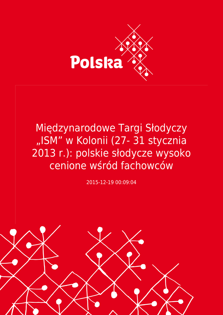 Międzynarodowe Targi Słodyczy „ISM” w Kolonii (27- 31 stycznia 2013 r.): polskie słodycze wysoko cenione wśród fachowców 2015-12-19 00:09:04 2 W dniach 27-31 stycznia 2013 r. w Kolonii miały miejsce największe na świecie branżowe targi słodyczy „ISM". W tegorocznej edycji swoją ofertę zaprezentowało 1.402 wystawców z 67 krajów, z tego 82%, to zagraniczni wystawcy. Imprezę odwiedziło ok. 35 tysięcy klientów branżowych ze 150 krajów reprezentujących handel detaliczny i hurtowy oraz prasę i branżowe związki przedsiębiorców. W dniach 27-31 stycznia 2013 r. w Kolonii miały miejsce największe na świecie branżowe targi słodyczy „ISM". W tegorocznej edycji swoją ofertę zaprezentowało 1.402 wystawców z 67 krajów, z tego 82%, to zagraniczni wystawcy. Imprezę odwiedziło ok. 35 tysięcy klientów branżowych ze 150 krajów reprezentujących handel detaliczny i hurtowy oraz prasę i branżowe związki przedsiębiorców. W gronie wystawców było też 42 przedsiębiorców z Polski. Większość z nich, to stali bywalcy prezentujący swoje wyroby od lat, dla których udział w targach ze względów prestiżowych jest obowiązkowy. Impreza potwierdziła, że polskie słodycze cieszą się wśród klientów biznesowych uznaną renomą i są poszukiwanym towarem. Decydującym czynnikiem świadczącym o zainteresowaniu nie jest już cena, lecz przede wszystkim walory smakowe i jakość, które mają szczególne znaczenie w przypadku eksportu słodyczy na wymagające rynki Zachodniej Europy. Oferta wystawców z Polski była szeroka i obejmowała całą gamę słodyczy, począwszy od cukierków miękkich i twardych, z nadzieniem i bez, poprzez ciastka, wafle i snaki, owoce kandyzowane, lizaki, a skończywszy na czekoladach, pralinach i truflach. Producenci słodyczy z Polski eksportują swoje produkty na rynki Zachodniej Europy, jak i dalekich krajów, zwłaszcza arabskich. Wśród handlowców z krajów arabskich bardzo dużym zainteresowaniem cieszą się polskie batony czekoladowe, kruche ciastka i cukierki czekoladowe. W dalszym ciągu cenione są wśród odbiorców polskie krówki, stąd nie dziwi duże zainteresowanie na stoiskach producentów takich wyrobów jak: Mieszko, Geomax „Misztal-Stateczny" Sp. j. i Wawel. Potwierdziły to rozmowy przeprowadzone przez przedstawicieli Wydziału Promocji Handlu i Inwestycji w Kolonii na stoisku informacyjno-promocyjnym, na którym aktywnie promowano ofertę polskich producentów poprzez różnorodne wydawnictwa prasowe o branży spożywczej, broszury i katalogi producentów i dystrybutorów słodyczy, jak również wykazy branżowych firm zarówno obecnych na targach, jak i innych. Należy odnotować wzrost zainteresowania niemieckich handlowców i importerów niektórymi wyrobami z Polski, jak np. żelki owocowe, owoce w polewie czekoladowej i trufle. Warto podkreślić, że coraz więcej polskich producentów sprzedaje już swoje wyroby na niemieckim rynku. Do takich firm należą zarówno duże zakłady produkcyjne: Wawel, Mieszko, Solidarność, Milano, Delic-Pol, jak również małe i średnie firmy, jak np.: Argo, Magnat, Chojecki ZPC, Łużyckie Praliny, czy Cuprod. Warto podkreślić obecność nowości produktowych z Polski, jak np. tych prezentowanych przez firmę SuroVital s. c. z Piaseczna k. Warszawy, producenta czekolady z nieprażonego ziarna kakao. Wyroby tego producenta zostały zgłoszone do konkursu na najlepszą nowość targów „New Product Showcase". Zaletą tych czekolad jest duża zawartość magnezu, potasu i żelaza. Wszystkie surowce, z których korzysta firma pochodzą bezpośrednio od farmerów lub spółdzielni rolniczych prowadzących uprawy ekologiczne potwierdzone licznymi certyfikatami, w tym certyfikatami rolnictwa ekologicznego przyznawanymi przez Unię Europejską. 3 Niemieckie firmy zainteresowane Polską ofertą produktową na targach „ISM 2013" lub uzyskaniem list adresowych polskich producentów proszone są o kontakt mailowy pod adresem: [email protected] . 4