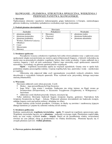 SŁOWIANIE – PLEMIONA, STRUKTURA SPOŁECZNA, WIERZENIA