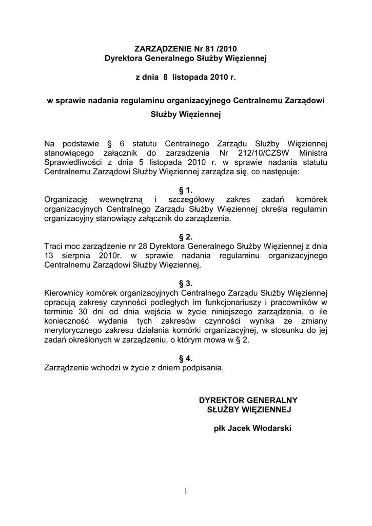 ZARZĄDZENIE Nr 81 /2010 Dyrektora Generalnego Służby