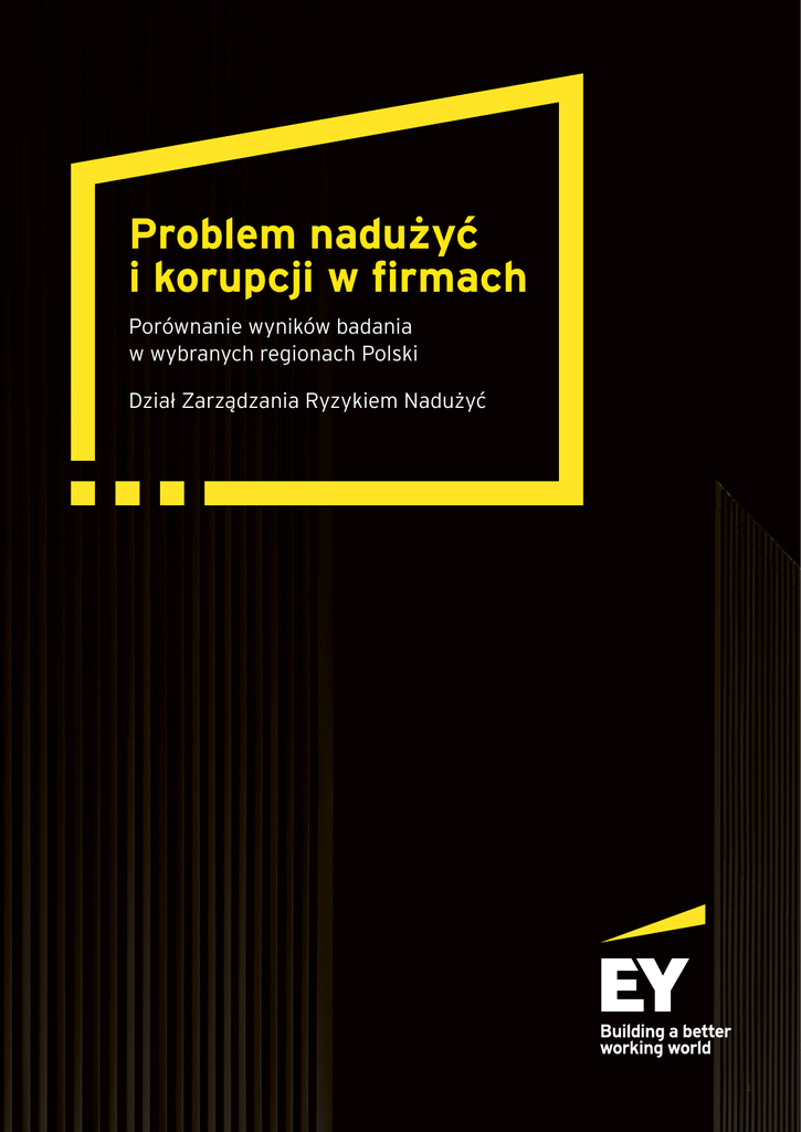 Problem nadużyć i korupcji w firmach Porównanie wyników badania w wybranych regionach Polski Dział Zarządzania Ryzykiem Nadużyć 1 2 | Problem nadużyć i korupcji w firmach Przedmowa Mariusz Witalis Partner Dział Zarządzania Ryzykiem Nadużyć Od kilkunastu lat Dział Zarządzania Ryzykiem Nadużyć EY prowadzi międzynarodowe badania dotyczące zjawisk nadużyć gospodarczych i korupcji w biznesie. Badania te prowadzimy w Polsce i innych kilkudziesięciu krajach analizując między innymi presję wywieraną na przedsiębiorstwa, poziom świadomości istniejących zagrożeń wśród kadry kierowniczej oraz stopień tolerancji nieetycznych zachowań przez menedżerów i pracowników. Przedstawiamy też rozwiązania, które zaobserwowaliśmy w firmach skutecznie zarządzających ryzykiem nadużyć gospodarczych. W 2015 roku, postanowiliśmy przeprowadzić dodatkowe autorskie badanie, które objęło wyłącznie Polskę i skoncentrowało się na Małopolsce, Śląsku i Mazowszu. Celem raportu było sprawdzenie, jak istotny jest problem nadużyć gospodarczych i korupcji w biznesie, jakie branże i obszary działalności firm są na niego szczególnie narażone oraz jakie mechanizmy ograniczające te zjawiska są najczęściej stosowane. Wybór badanych województw wynikał z obecności ekspertów Działu Zarządzania Ryzykiem Nadużyć w trzech biurach EY w Polsce: w Warszawie, Katowicach i Krakowie. Wyniki nie napawają optymizmem. Pomimo, że od kilkunastu lat firmy coraz częściej piętnują zachowania nieetyczne i wprowadzają programy zapewnienia zgodności (compliance) a raz po raz słyszymy o działaniach organów ścigania i zatrzymaniach kolejnych osób podejrzanych o praktyki korupcyjne lub działanie na szkodę przedsiębiorstw, poziom nadużyć gospodarczych i korupcji w Polsce pozostaje wysoki. Co gorsza, firmy w dalszym ciągu traktują te zjawiska jako „wypadek przy pracy” i nie są przygotowane żeby wcześnie je wykrywać oraz skutecznie im przeciwdziałać. Wielu pracowników nie wie, jak zareagować w przypadku zaobserwowania nadużycia, a Ci, którzy wiedzą, często boją się negatywnych konsekwencji zgłoszenia takich przypadków pracodawcy. Ten niepokojący obraz, skłania do zadawania ważnych pytań: • Czy zarządy i rady nadzorcze są aktywnie zaangażowane w zarządzanie ryzykiem nadużyć w firmach? • Jak skutecznie promować etyczne zachowania i pogodzić je z celami biznesowymi firmy? • Czy zespoły audytu wewnętrznego i compliance mają odpowiednie zasoby? • Czy w firmie funkcjonują efektywne kanały informowania o nadużyciach? Czy pracownicy wiedzą jak z nich korzystać? Nasze doświadczenia wskazują, że problem nadużyć i korupcji w firmach sam się nie rozwiąże. Wprost przeciwnie, jego długotrwałe ignorowanie lub marginalizowanie powoduje, że jego wpływ na funkcjonowanie przedsiębiorstwa jest o wiele większy, z zagrożeniem jego kontynuacji włącznie. A jeśli nie zadaje się trudnych pytań, pojawia się poważne ryzyko przeoczenia istotnych zagrożeń. Mamy nadzieję, że nasze badanie będzie wspomagać efektywny dialog na temat zarządzania ryzykiem nadużyć w firmach z udziałem kierownictwa firm i kluczowych interesariuszy. Przy tej okazji chcemy również podziękować wszystkim respondentom za udział w badaniu. Z poważaniem, Mariusz Witalis 3 Palący problem nadużyć i korupcji • W lutym 2015 roku zapytaliśmy 300 aktywnych zawodowo osób, reprezentujących firmy z trzech regionów: Śląska, Małopolski i Mazowsza o kwestie związane ze zjawiskami nadużyć i korupcji w ich firmach • Wyniki badania jednoznacznie potwierdziły, że zjawiska te są palącym problemem - co trzeci respondent na Mazowszu i w Małopolsce oraz co drugi na Śląsku uważa, że praktyki nadużyć i korupcji są rozpowszechnione w biznesie w ich regionie. Co ciekawe, ankietowani z Mazowsza uznali, że ich region, w porównaniu do innych, jest szczególnie narażony na te zjawiska • Percepcja zjawiska nadużyć i korupcji została zestawiona z rzeczywistymi doświadczeniami w tym zakresie. Pomimo, iż ankietowani z Mazowsza wskazywali na swój region jako najbardziej narażony na nadużycia, to respondenci ze Śląska częściej potwierdzali fakt ujawnienia różnego typu nieprawidłowości w ciągu ostatnich dwóch lat działalności firmy (22%). W pozostałych regionach, odsetek potwierdzonych przypadków nadużyć był istotnie niższy 14% w przypadku firm z Mazowsza i 13% z Małopolski Zaobserwowane przypadki dotyczyły: 40% 4 | Problem nadużyć i korupcji w firmach 38% 32% 28% Gdzie jest największe ryzyko? Na Śląsku za szczególnie narażone na ryzyko nadużyć i korupcji respondenci uznali górnictwo W Małopolsce respondenci wskazali na branżę budowlaną • Ankietowani ze wszystkich regionów zgodnie wskazali na administrację publiczną jako sektor szczególnie podatny na zjawiska nadużyć i korupcji. Postrzeganie ryzyka nieprawidłowości w innych branżach było zróżnicowane regionalnie • Jeśli chodzi o zagrożenie wewnątrz firmy, to co trzeci ankietowany ocenił, że do przypadków nadużyć i korupcji dochodzi najczęściej w działach zakupów i sprzedaży. W dalszej kolejności wskazywali oni także na działy logistyki, księgowości oraz kadr i płac • W opinii naszych respondentów, również inne branże nie są wolne od ryzyka występowania tego typu zjawisk. Wskazali oni przede wszystkim na sektor ochrony zdrowia, nieruchomości, handlu oraz branżę chemiczną • W regionach wyniki były zróżnicowane. Obszar zakupów był częściej wymieniany przez przedstawicieli Śląska, natomiast sprzedaży – przez ankietowanych z Mazowsza. Badani z Małopolski zwracali z kolei uwagę na ryzyko nieprawidłowości w księgowości 36% 33% 16% Logistyka 17% 16% 5 Niewystarczająca promocja etycznych postaw • Wyniki wskazują na istotne zaniedbania w zakresie działań prewencyjnych. Ponad połowa u