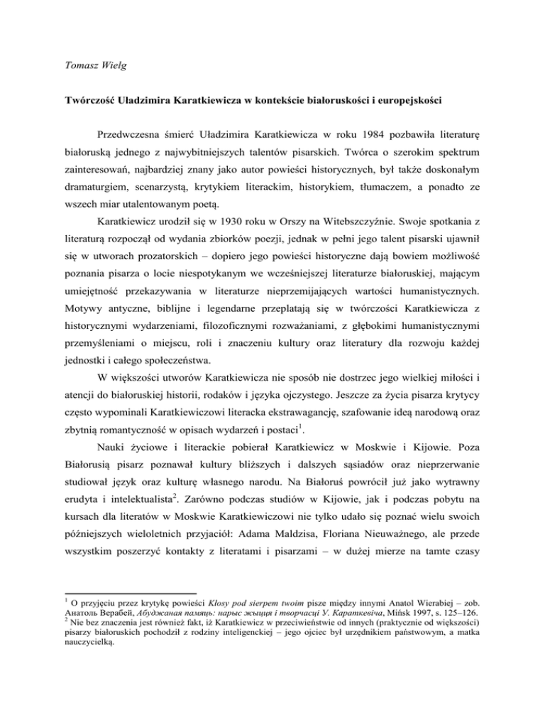 Tomasz Wielg Twórczość Uładzimira Karatkiewicza w kontekście