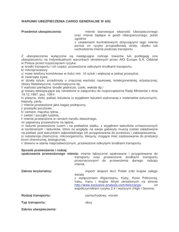 WARUNKI UBEZPIECZENIA CARGO GENERALNE W AIG