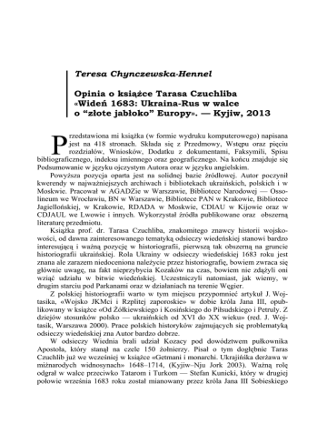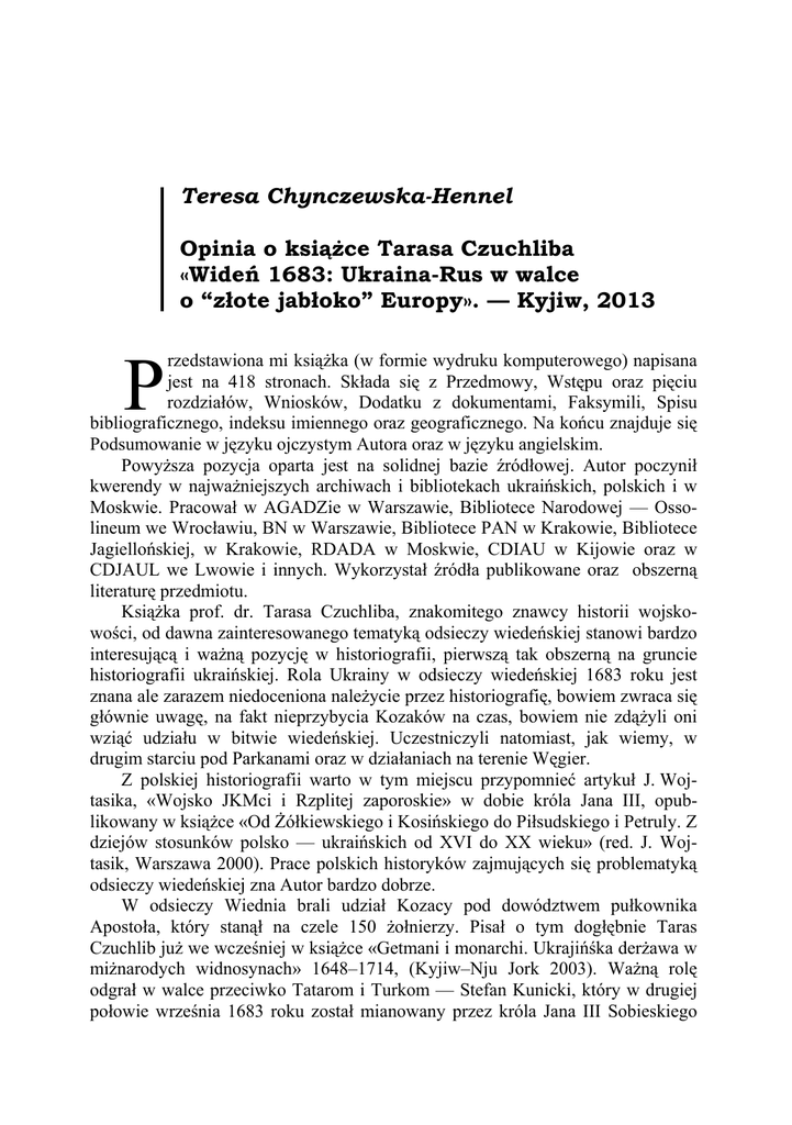 Teresa Chynczewska-Hennel Opinia o książce Tarasa Czuchliba