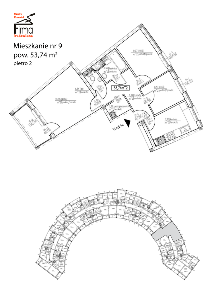 Mieszkanie nr 9 pow. 53,74 m2 pietro 2 jś We cie