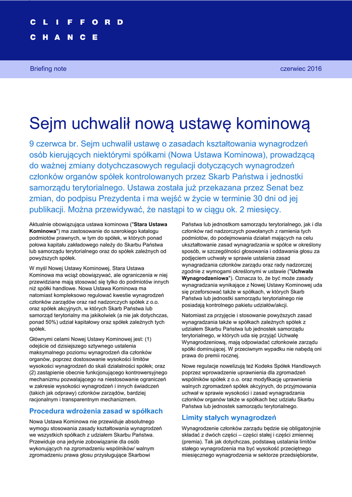 osób kierujących niektórymi spółkami (Nowa Ustawa Kominowa), prowadzącą