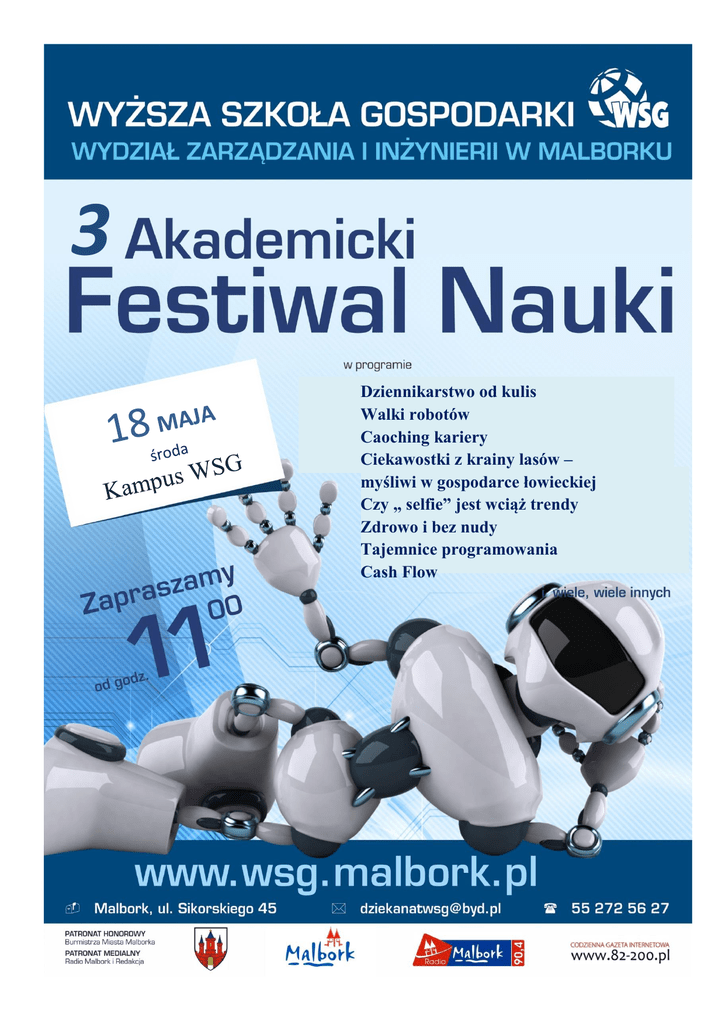 3 Dziennikarstwo od kulis Walki robotów Caoching kariery Ciekawostki z krainy lasów – myśliwi w gospodarce łowieckiej Czy „ selfie” jest wciąż trendy Zdrowo i bez nudy Tajemnice programowania Cash Flow