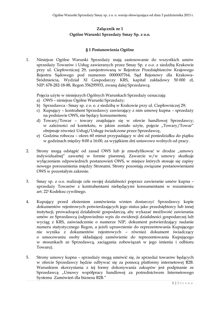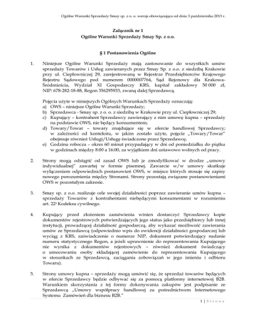 Załącznik nr 1 Ogólne Warunki Sprzedaży Smay Sp. z o.o. § 1