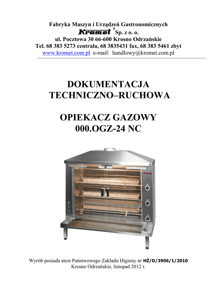 dokumentacja techniczno–ruchowa opiekacz gazowy 000