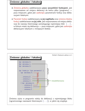 funkcji zadeklarowana w jej ciele, jest rozpoznawana od miejsca deklaracji do nawiasu klamrowego zamykającego najmniejszy blok {. . . } ,