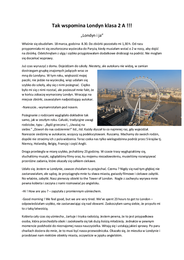 Tak wspomina Londyn klasa 2 A