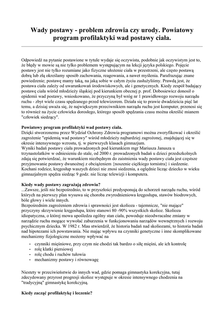 Wady postawy - problem zdrowia czy urody. Powiatowy
