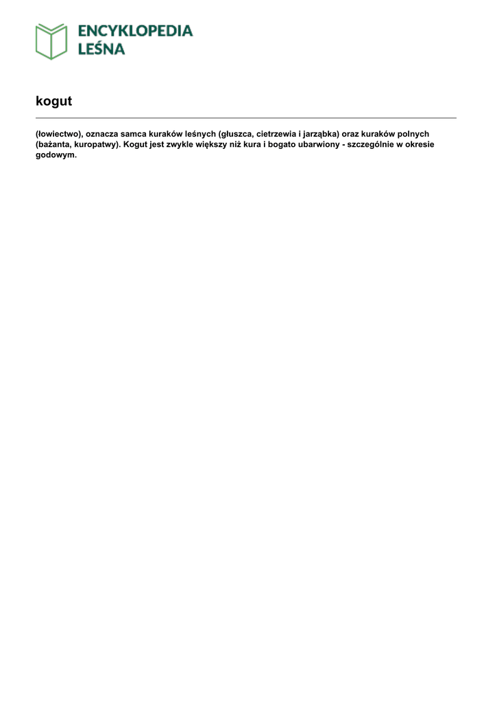 kogut (łowiectwo), oznacza samca kuraków leśnych (głuszca, cietrzewia i jarząbka) oraz kuraków polnych (bażanta, kuropatwy). Kogut jest zwykle większy niż kura i bogato ubarwiony - szczególnie w okresie godowym.
