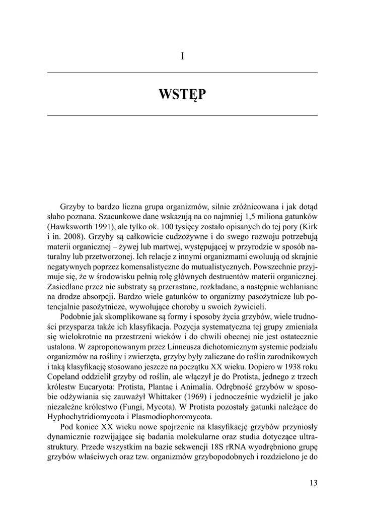 I WSTĘP Grzyby to bardzo liczna grupa organizmów, silnie zróżnicowana i jak dotąd słabo poznana. Szacunkowe dane wskazują na co najmniej 1,5 miliona gatunków (Hawksworth 1991), ale tylko ok. 100 tysięcy zostało opisanych do tej pory (Kirk i in. 2008). Grzyby są całkowicie cudzożywne i do swego rozwoju potrzebują materii organicznej – żywej lub martwej, występującej w przyrodzie w sposób naturalny lub przetworzonej. Ich relacje z innymi organizmami ewoluują od skrajnie negatywnych poprzez komensalistyczne do mutualistycznych. Powszechnie przyjmuje się, że w środowisku pełnią rolę głównych destruentów materii organicznej. Zasiedlane przez nie substraty są przerastane, rozkładane, a następnie wchłaniane na drodze absorpcji. Bardzo wiele gatunków to organizmy pasożytnicze lub potencjalnie pasożytnicze, wywołujące choroby u swoich żywicieli. Podobnie jak skomplikowane są formy i sposoby życia grzybów, wiele trudności przysparza także ich klasyfikacja. Pozycja systematyczna tej grupy zmieniała się wielokrotnie na przestrzeni wieków i do chwili obecnej nie jest ostatecznie ustalona. W zaproponowanym przez Linneusza dichotomicznym systemie podziału organizmów na rośliny i zwierzęta, grzyby były zaliczane do roślin zarodnikowych i taką klasyfikację stosowano jeszcze na początku XX wieku. Dopiero w 1938 roku Copeland oddzielił grzyby od roślin, ale włączył je do Protista, jednego z trzech królestw Eucaryota: Protista, Plantae i Animalia. Odrębność grzybów w sposobie odżywiania się zauważył Whittaker (1969) i jednocześnie wydzielił je jako niezależne królestwo (Fungi, Mycota). W Protista pozostały gatunki należące do Hyphochytridiomycota i Plasmodiophoromycota. Pod koniec XX wieku nowe spojrzenie na klasyfikację grzybów przyniosły dynamicznie rozwijające się badania molekularne oraz studia dotyczące ultrastruktury. Przede wszystkim na bazie sekwencji 18S rRNA wyodrębniono grupę grzybów właściwych oraz tzw. organizmów grzybopodobnych i rozdzielono je do 13 Wstęp trzech różnych królestw: Fungi, Protozoa i Chromista (Kirk i in. 2008, Burns i in. 1991, 1992, Guarro i in. 1999). Do organizmów grzybopodobnnych należy obecnie ok. 2000 gatunków (Kirk i in 2008). Natomiast w obrębie grzybów właściwych najliczniejsze są dwie grupy – workowce (Ascomycota, ok. 64 tys. gatunków) oraz podstawczaki (Basidiomycota, ok. 31 tys. gatunków). Pozostałe typy liczą łącznie ok. 3240 gatunków (Kirk i in. 2008). Do grzybów właściwych należą także grzyby anamorficzne, określane wcześniej mianem aseksualnych, a później niedoskonałych (Fungi imperfecti, Deuteromycetes). Jest to grupa sztuczna, skupiająca gatunki uważane za stadia anamorficzne przede wszystkim workowców i podstawczaków. W jej skład wchodzi także rodzaj Septoria, dlatego poniżej podano nieco szerszą charakterystykę tej interesującej, a jednocześnie słabo poznanej grupy organizmów. Najstarsze opisy i ilustracje grzybów „aseksualnych” pochodzą z XVIII wieku. Micheli w swym dziele Nova Plantarum Genera zamieścił charakterystykę dwóch rodzajów: Aspergillus i Botrytis (Kendrick1981). Natomiast Fuckel w 1869 roku podzielił grzyby na dwie grupy: doskonałe (Fungi Perfecti) i niedoskonałe (Fungi Imperfecti). Te ostatnie określano również mianem Deuteromycotina (Deuteromycota, Deuteromycetes). Autorem nazwy „Deuteromycetae” jest Saccardo (Saccardo i Sydow, Syll. Fung. 16: 825. 1902), a pochodzi ona od greckiego słowa deuteros, co znaczy wtórny, drugorzędny. Saccardo zajmował się również klasyfikacją, a rodzaje, rodziny, rzędy i klasy wyróżniał na podstawie budowy konidiów, ich kształtu, zabarwienia i miejsca powstawania. Deuteromycetae podzielił na trzy grupy: Hyphomycetes, Melanconieae, Sphaeropsideae (późniejsze rzędy: Moniliales, Melanconiales i Sphaeropsidales). Uporządkował w ten sposób dane i choć stworzył sztuczny system, był on na tyle praktyczny i łatwy w użyciu, że przetrwał wiele lat. W podręcznikach stosowano go jeszcze w 2003 roku (Marcinkowska 2003). W swoim dziele Sylloge Fungorum (1884, 1886) zaadoptował też funkcjonujące już wcześniej nazwy, mianowicie: „Hyphomycetes” wprowadzoną przez Martius’a w 1817 roku, „Melanconiae” przez Berkeleya w 1860 oraz „Sphaeropsidae” przez Léveillé w 1846 roku (Kendrick 1981). Nazwa „Coelomycetes” pojawiła się nieco później – podał ją Grove (1919, 1935), który połączył w ten sposób gatunki produkujące zarodniki w acerwulusach i pyknidiach. W tym układzie rodzaj Septoria wchodził w skład klasy Coelomycetes i rzędu Sphaeropsidales. Z kolei Sutton (1980) zaproponował podział Deuteromycotina na podstawie konidiogenezy, budowy konidiów i konidiom. W tym przypadku rodzaj Septoria włączono do klasy Blastodeuteromycetes, rzędu Blastales, podrzędu Blastopyknidiinae. Określenie „grzyby anamorficzne” powstało dzięki badaniom dotyczącym rozwoju tych organizmów. Termin „anamorfa” wprowadzili do mykologii Hennebert i Weresub (1977), jako modyfikację nazwy „anamorphosis” zaproponowanej przez Donka (1960). Oznaczała ona grzyby w stadium mitozy, w odróżnieniu od teleomorfy, czyli fazy mejotycznej. Anamorfa i teleomorfa tworzą łącznie 14 Wstęp tzw. holomorfę, czyli cały organizm we wszystkich stadiach rozwojowych. Zastąpienie podgromady Deuteromycotina nazwą „grzyby anamorficzne” (Fungi Anamorphici) jako pierwszy zaproponował Kendrick (1989), zauważając, że błędem jest stosowanie hierarchii taksonomicznej dla nieformalnej, sztucznie stworzonej grupy. W chwili obecnej w zasadzie nie obowiązuje wewnętrzna klasyfikacja w obrębie grzybów anamorficznych i od kilkunastu lat są one podawane w porządku alfabetycznym (Kirk i in. 2008). W Polsce powstało wiele (ok. 30) taksonomicznych opracowań grzybów publikowanych w formie monografii, przy czym najwięcej dotyczyło macr