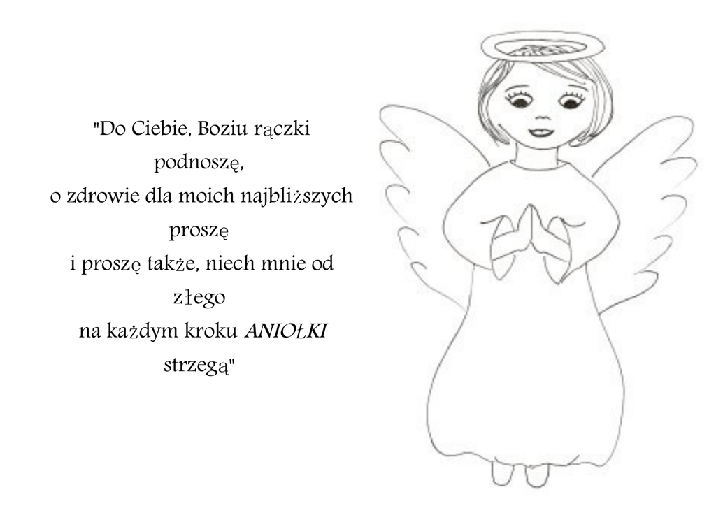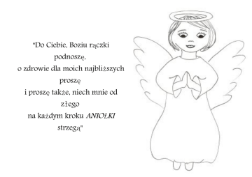 "Do Ciebie, Boziu rączki podnoszę, o zdrowie dla moich najbliższych proszę i proszę także, niech mnie od złego na każdym kroku ANIOŁKI strzegą"