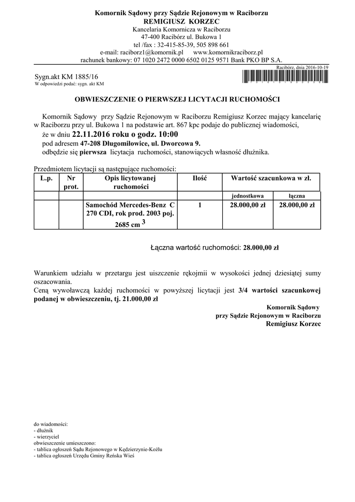 Obwieszczenie - komornikraciborz.pl