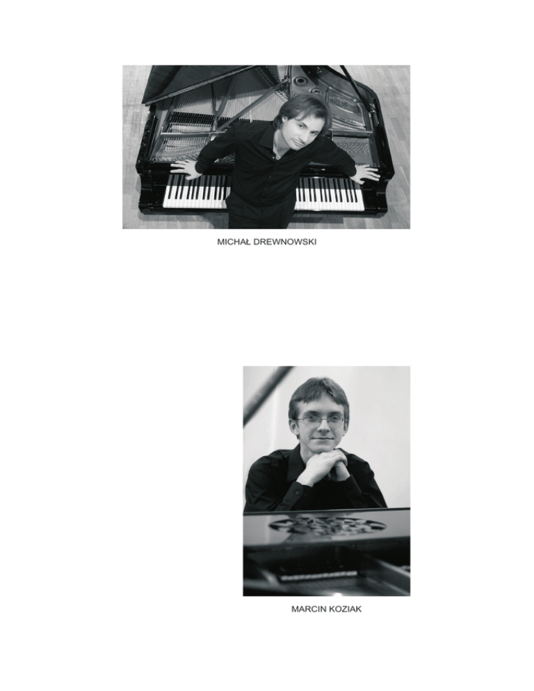 MICHA£ DREWNOWSKI MARCIN KOZIAK Pi¹tek 12 IX godz. 19.00 SALA FILHARMONII I TEATRU ZAKOÑCZENIE FESTIWALU KONCERT LAUREATÓW ESTRADY M£ODYCH WYKONAWCY: LAUREACI ESTRADY M£ODYCH ’2008 * * * MICHA£ DREWNOWSKI fortepian MARCIN KOZIAK fortepian R U B E N S I LVA dyrygent ORKIESTRA SYMFONICZNA FILHARMONII KOSZALIÑSKIEJ 69 PROGRAM 12 IX Utwory solowe w wykonaniu laureatów Estrady M³odych ’2008 * * * TADEUSZ MAJERSKI (1888-1963) Koncert fortepianowy (1946, 1956 druga redakcja)* FERENC LISZT (1811-1886) I Koncert fortepianowy Es-dur (1855) * Wykonanie premierowe 70 M icha³ Drewnowski, ur. w 1977 roku w Warszawie. Naukê gry na fortepianie rozpocz¹³ w wieku 8 lat pod okiem ojca, wybitnego pianisty Marka Drewnowskiego. Nastêpnie, maj¹c 14 lat podj¹³ dalsz¹ edukacjê muzyczn¹ w Liceum Muzycznym im. Karola Szymanowskiego w Warszawie pod kierunkiem prof. Bronis³awy Kawalli i prof. Ewy Pob³ockiej. W 2001 roku ukoñczy³ z wyró¿nieniem Akademiê Muzyczn¹ im. K. i G. Bacewiczów w £odzi w klasie fortepianu ojca Marka Drewnowskiego, profesora tamtejszej uczelni. W latach 2002-2005 studiowa³ w Konserwatorium Muzycznym w Genewie u wybitnych pedagogów: Dominique Merlet i Pascala Devoyon. Bra³ ponadto udzia³ w wielu mistrzowskich kursach pianistycznych prowadzonych przez znakomitych pianistów jak: Naum Shtarkmann, Mi³osz Magin, Fou T’soung, Rudolf Kehrer i Eugen Indjic. Micha³ Drewnowski jest laureatem: – Nagrody Specjalnej na I Miêdzynarodowym Konkursie Indywidualnoœci Muzycznych im. A. Tansmana w £odzi (1996) – I Nagrody na XIII Konkursie Muzyki Kameralnej im. G. Bacewicz w £odzi – Estrady M³odych 32. Festiwalu Pianistyki Polskiej w S³upsku (1998) – II Nagrody na Miêdzynarodowym Konkursie Pianistycznym im. M. Masin w Sangemini (W³ochy, 2000) – II Nagrody na Konkursie Pianistycznym A.GI.MUS. w Rzymie (2005). Koncertuje jako solista i kameralista w Polsce, W³oszech, Francji, Szwajcarii, Luksemburgu, Belgii, Bu³garii, Anglii, Austrii, Czechach, Finlandii, Danii i w Niemczech. Wspó³pracowa³ z orkiestrami symfonicznymi w kraju i za granic¹ pod batut¹ m.in: Emiliana Madeya, Piotra Wijatkowskiego, Janusza Powolnego, Tadeusza Koz³owskiego, Vladimira Kiradjeva i Stanislava Ousheva. Do wa¿niejszych jego wystêpów mo¿na zaliczyæ koncerty na festiwalach: Passage w Warszawie, Salon of the Arts w Sofii, Festival Musicale di Norcia (W³ochy), Varna Summer Festival (Bu³garia), Krakowska Wiosna Muzyczna, Warszawskie Spotkania Muzyczne, Festiwal Chopinowski w Genewie, Keminklavier w Kemi (Finlandia). Wystêpowa³ równie¿ w Gianicolo w Rzymie, Steinway Kammersal w Kopenhadze, Kunstmuseum w Silkeborg (Dania) i Wigmore Hall w Londynie. W latach 2000-2002 wystêpowa³ w Teatrze Nowym w Warszawie jako aktor-pianista w przedstawieniu Adama Hanuszkiewicza Chopin, jego ¿ycie, jego mi³oœæ, jego muzyka… w roli Fryderyka Chopina. Dyskografia Micha³a Drewnowskiego obejmuje nagranie dla firmy fonograficznej GEGA NEW muzyki na 2 fortepiany i perkusjê (Voland Quartet), dla firmy DUX p³ytê duetu fortepianowego Doppio Espresso z muzyk¹ kompozytorów amerykañskich i latynoamerykañskich (L. Bernstein, A. Piazzola, P. Zie71 gler i J. Bragato) oraz p³ytê z utworami fortepianowymi wspó³czesnego kompozytora szwajcarskiego Dominique Loup. Pianista ponadto propaguje ma³o znan¹ i ca³kiem zapomnian¹ muzykê polskich kompozytorów, m.in. takich jak: Ludwik Grossmann, Jadwiga Sarnecka, Stefan Kisielewski, Tadeusz Majerski. M arcin Koziak urodzi³ siê w 1989 roku w Krakowie. Jest uczniem Pañstwowej Szko³y Muzycznej II stopnia im. W³adys³awa ¯eleñskiego w Krakowie w klasie fortepianu prof. Stefana Wojtasa. W wieku 10 lat wygra³ swój pierwszy ogólnopolski konkurs, a rok póŸniej zadebiutowa³ z Orkiestr¹ Filharmonii Krakowskiej. Jest laureatem wielu nagród na konkursach ogólnopolskich i miêdzynarodowych, z których naistotniejsze to: I nagroda na II Miêdzynarodowym Konkursie Chopinowskim dla M³odych Pianistów (Budapeszt 2006), II nagroda i 3 nagrody dodatkowe na VII Miêdzynarodowym Konkursie M³odych Pianistów „Arthur Rubinstein in memoriam” (Bydgoszcz 2007). Goœci³ na wielu festiwalach muzycznych, wystêpuj¹c m.in. na XXVI Miêdzynarodowym Festiwalu „Chopin w barwach jesieni” (Antonin 2007), V Festiwalu Pianistycznym organizowanym przez El¿bietê Pendereck¹ (Warszawa 2007); zosta³ tak¿e laureatem Estrady M³odych i otrzyma³ nagrodê specjaln¹ na 41. Festiwalu Pianistyki Polskiej (S³upsk 2007). Wspó³pracowa³ z wieloma orkiestrami (m.in. w styczniu 2008 roku zadebiutowa³ z Orkiestr¹ Symfoniczn¹ Filharmonii Narodowej w Warszawie wykonuj¹c I Koncert fortepianowy Piotra Czajkowskiego pod dyrekcj¹ Maximiano Valdesa). Uczestniczy³ w kursach mistrzowskich, które prowadzili m.in. Andrzej Jasiñski, Daejin Kim, Katarzyna Popowa-Zydroñ i Jacques Rouvier. Za swoj¹ dzia³alnoœæ i osi¹gniêcia otrzyma³ wiele nagród i stypendiów (m.in. trzykrotnie stypendium Ministra Kultury RP). W styczniu 2008 otrzyma³ Stypendium Ministra Kultury i Dziedzictwa Narodowego „M³oda Polska 2008”. Koncertowa³ w Niemczech, Austrii, Estonii, Szwecji, na Ukrainie, Wêgrzech i w Rumunii. 72 JAN POPIS – DYREKTOR ARTYSTYCZNY FPP an Popis. Muzykolog, krytyk muzyczny, producent oraz wydawca p³yt CD z muzyk¹ klasyczn¹. Jeden z najwybitniejszych znawców muzyki Fryderyka Chopina. Ukoñczy³ studia muzykologiczne na Uniwersytecie Warszawskim. Specjalizuje siê w muzyce fortepianowej, ze szczególnym uwzglêdnieniem sztuki interpretacji dzie³ Chopina. Przez 33 lata, od 1974 pracowa³ w Polskim Radiu – w redakcjach b¹dŸ dzia³ach muzyki klasycznej, gdzie od samego pocz¹tku przygotowywa³ i prowadzi³ autorskie programy, w tym s³ynne Œrody chopinowskie. Liczbê odbiorców tych audycji, autorstwa Jana Popisa, szacuje siê na ok. 1,5 miliarda. Od roku 1975 komentuje w Polskim Radiu oraz w TVP siedem kolejnych Miêdzynarodowych Konkursów Pian