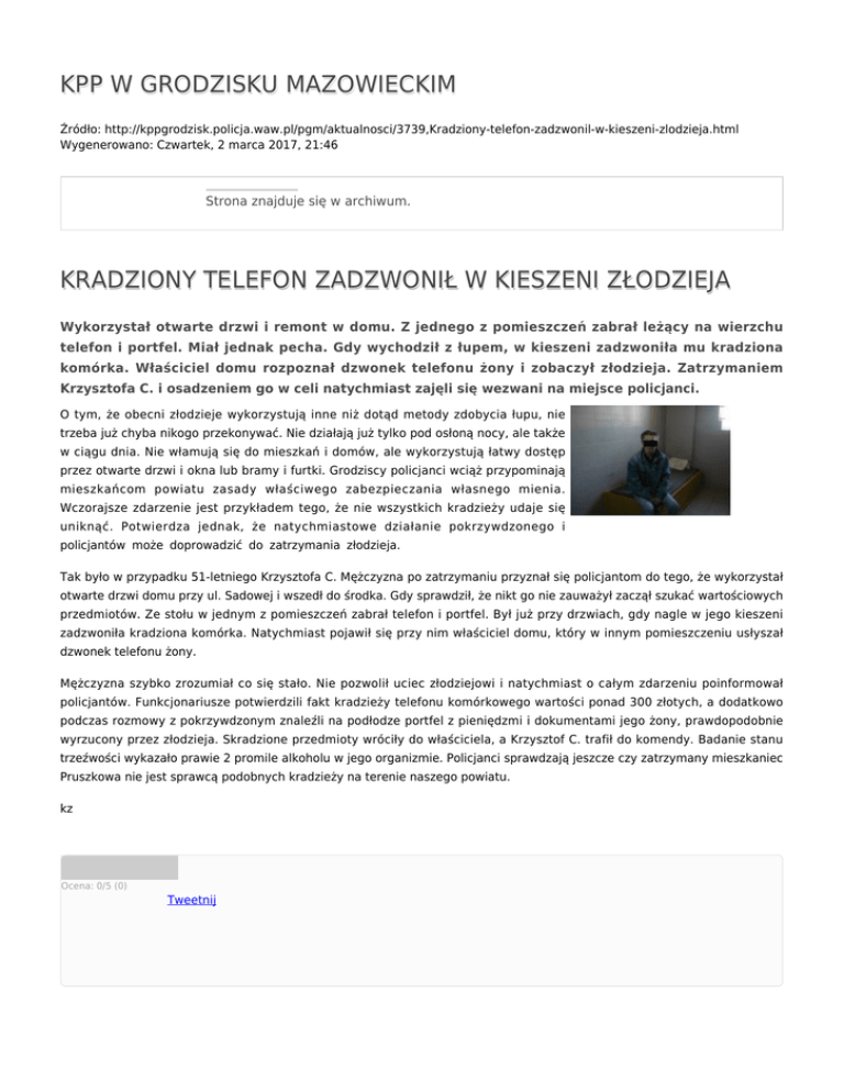 KPP W GRODZISKU MAZOWIECKIM KRADZIONY TELEFON