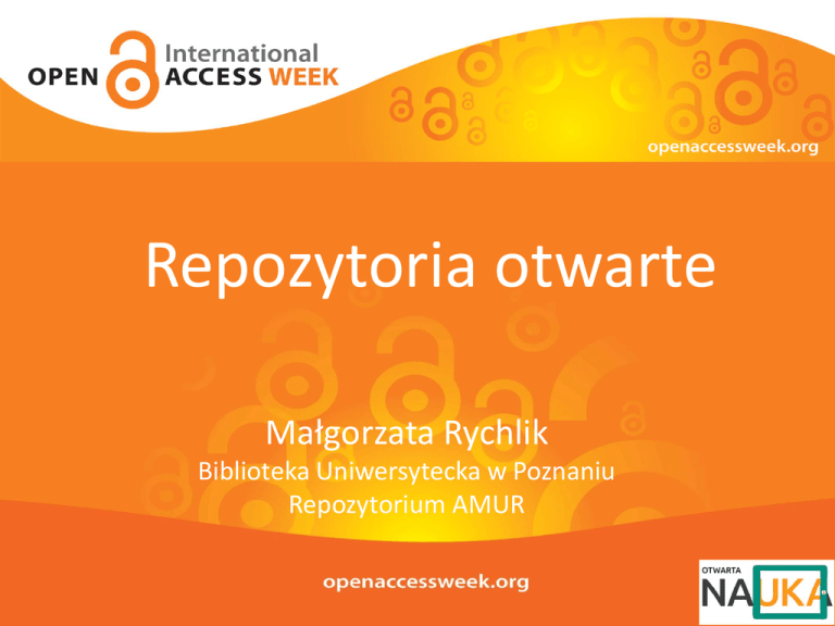 Repozytoria otwarte Małgorzata Rychlik Biblioteka Uniwersytecka w Poznaniu Repozytorium AMUR Plan prezentacji Co to jest repozytorium, ile jest repozytoriów w Polsce i na świecie, jakie są typy repozytoriów. Jakie są korzyści z umieszczania prac w repozytorium. Co zrobić, aby umieścić pracę w repozytorium. Deponowanie pracy w repozytorium. Repozytoria • Upowszechniają dorobek naukowy w sieci, • Są narzędziem potencjalnie zwiększającym cytowalność dorobku, • Są narzędziem pomagającym w ocenie parametrycznej naukowca i uczelni, • Są narzędziem marketingowym zarówno dla uczonego jak i jego instytucji macierzystej, • Długoterminowo przechowują prace. Repozytoria na świecie Repozytoria w Polsce Repozytoria w Polsce • • • • • • • • • • Toruń Nowy Sącz Repozytorium AMUR Repozytorium RUMAK Repozytorium RUŁ Repozytorium RUW Repozytorium RCIN Repozytorium IBB PAS Repozytorium Wydziału Elektrycznego PWr Repozytorium PKr Repozytorium Wyższej Szkoły Biznesu w NS Repozytorium CEON - agregator Typy repozytoriów • Repozytoria instytucjonalne • Repozytoria dziedzinowe • Repozytoria danych eksperymentalnych Repozytorium dziedzinowe • Jest to archiwum, które gromadzi dokumenty spójne tematycznie; jest niezależne od instytucji. • Repozytoria te nazywane są zwykle repozytoriami międzynarodowymi, bowiem gromadzą dane z całego świata. Repozytorium danych eksperymentalnych • Jest to archiwum, które gromadzi surowe dane eksperymentalne, np. genomy bakterii, zwierząt czy człowieka. • Takie repozytoria stanowią niezmiernie ważne narzędzie w pracy naukowców: - pozwalają na redukcję kosztów (fundusze nie są przeznaczane na te same badania ponownie), - oszczędzają czas, bowiem raz przeprowadzone badania służą całej społeczności naukowców. Repozytorium instytucjonalne • Zespół usług, które uniwersytet oferuje członkom swojej społeczności, • Usługi te służą zarządzaniu oraz upowszechnianiu cyfrowych dokumentów tworzonych przez instytucję i jej członków, • Repozytorium jest zobowiązaniem instytucji do zarządzania materiałami cyfrowymi, z uwzględnieniem: - długoterminowego zabezpieczenia obiektów, - zorganizowania dostępu do nich, - oraz ich rozpowszechniania. Upowszechnienie pracy w repozytorium Serwisy agregujące dokumenty i podające liczbę cytowań Google Scholar Statystyki Media społecznościowe Widoczność w wyszukiwarkach i serwisach podających liczbę cytowań Profil Google Scholar Citation Publish or Perish Publish or Perish jest szczególnie ważnym programem dla naukowców uprawiających humanistykę i nauki społeczne, bowiem zarówno liczba cytowań jak i indeks H wyliczone na podstawie PoP są uznawane przez Narodowe Centrum Nauki w aplikacjach grantowych. Statystyki z repozytorium AMUR Wtyczka społecznościowa w repozytorium AMUR Wskaźniki altmetryczne • Termin ten oznacza zarówno tworzenie jak i badanie nowych wskaźników służących analizie aktywności akademickiej opartej o Web 2.0. • Altmetria to nowy sposób mierzenia wpływu zasobu naukowego bazujący na narzędziach współpracy między naukowcami (np. Mendeley), mierzący zakładkowanie zasobu (np. CiteULike) oraz badający jego zasięg w sieci społecznościowej (np. Twitter). Zasady archiwizowania prac w repozytorium • zasada obligatoryjna • zasada fakultatywna 183 mandaty instytucjonalne 107 mandatów dot. prac doktorskich i magisterskich Kto deponuje prace w repozytorium? • Deponenci sami archiwizują swoje prace (samoarchiwizacja) • Redaktorzy repozytorium deponują prace w imieniu naukowca Jakie typ obiektów archiwizują repozytoria instytucjonalne na świecie? 1600 1428 1400 1202 1200 1000 720 800 719 701 600 422 400 200 0 Artykuły naukowe Prace mgr i dr Raporty i mat. Nieopublikowane Materiały konferencyjne Książki i rozdziały z książek Multimedia Jakie obiekty archiwizowane są w repozytorium AMUR? Artykuły 4478 Inne 1262 Prace doktorskie 800 Rozdziały z kisążek 267 Książki 179 Recenzje 87 Materiały dydaktyczne 39 Sprawozdania 36 Materiały konferencyjne 34 Postprinty 8 Prezentacje 6 0 1000 2000 3000 4000 5000 Jakie prace możemy umieścić w repozytorium? • Te, do których mamy autorskie prawa majątkowe • Należy ustalić, kto jest dysponentem tych praw • Ważne pytanie: czy podpisywaliśmy umowę? • Jeśli tak, to ustalamy politykę wydawcy w Portalu Sherpa/Romeo http://www.sherpa.ac.uk/romeo/ Sprawdzamy politykę wydawcy Jaki plik możemy zdeponować w repozytorium? • Przesyłamy plik w formie postprint, preprint lub ostatecznej wersji wydawcy • Plik pdf • Zoptymalizowanie pliku pod kątem wyszukiwarek takich jak Google czy Google Scholar Optymalizacja tekstów pod kątem wyszukiwarek naukowych (ASEO) • Zastosowanie odpowiednich słów kluczowych, • Zastosowanie odpowiednich metadanych, • Prawidłowe zapisy imion i nazwisk w bibliografii. Deponowanie prac Krok 1 Krok 2 Krok 3 Krok 4 Krok 5 Krok 6 • Zaloguj się na platformie • Rozpocznij nowe deponowanie • Wybierz odpowiednią kolekcję • Podaj informacje bibliograficzne • Załącz odpowiedni plik pdf • Zatwierdź licencję Zaloguj się w repozytorium Rozpocznij deponowanie Wybierz kolekcję Opisz pozycję Załącz plik Zatwierdź licencję Gotowe! Co o Amurze powiedział Profesor Wydziału Anglistyki UAM… „Zdarza się, że flagi krajów widoczne w statystykach nabierają kształtu personalnego np. w Japonii, w zeszłym tygodniu ujawniła się osoba z Korei, która właśnie z AMUR pobierała moje artykuły. Te sympatyczne wydarzenia bardzo motywują mnie tak do pisania, jak i do udostępniania światu tego, co napisałem.” Co o Amurze powiedziała doktorantka Wydziału Biologii… „Chciałam tylko się pochwalić, że dzięki repozytorium moja praca z 2010 roku została zacytowana w artykule z czasopisma "Ticks and tick-borne diseases" i dzięki temu wskoczyłam na indeks H=1