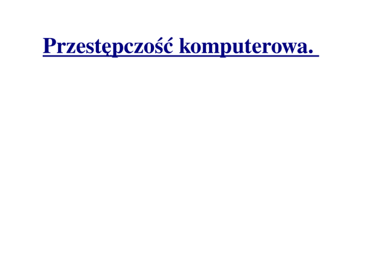Przestępczość komputerowa. Kodeks Karny, zawiera przepisy przewidujące odpowiedzialność karną za popełnienie przestępstw. W polskim prawodawstwie przestępstwa komputerowe sankcjonowane są głównie przez wytyczne kodeksu karnego z dnia 6 czerwca 1997 rok. Zawarte są one w ": Rozdziale XXXIII „Przestępstwa przeciwko ochronie informacji" Rozdziale XXXIV „Przestępstwa przeciwko wiarygodności dokumentów" Rozdziale XXXV „Przestępstwa przeciwko mieniu" WYBRANE ASPEKTY PRZESTĘPSTW KOMPUTEROWYCH Hacking: Art., 267. § 1. Kto bez uprawnienia uzyskuje informację dla niego nieprzeznaczoną, otwierając zamknięte pismo, podłączając się do przewodu służącego do przekazywania informacji lub przełamując elektroniczne, magnetyczne albo inne szczególne jej zabezpieczenie, podlega grzywnie, karze ograniczenia wolności albo pozbawienia wolności do lat 2. Sabotaż komputerowy: Art., 269. § 1. Kto, na komputerowym nośniku informacji, niszczy, uszkadza, usuwa lub zmienia zapis o szczególnym znaczeniu dla obronności kraju, bezpieczeństwa w komunikacji, funkcjonowania administracji rządowej, innego organu państwowego lub administracji samorządowej albo zakłóca lub uniemożliwia automatyczne gromadzenie lub przekazywanie takich informacji, podlega karze pozbawienia wolności od 6 miesięcy do lat 8. Fałszerstwo komputerowego zapisu informacji stanowiącego dokument: Art., 270. § 1. Kto, w celu użycia za autentyczny, podrabia lub przerabia dokument lub takiego dokumentu jako autentycznego używa, podlega grzywnie, karze ograniczenia wolności albo pozbawienia wolności od 3 miesięcy do lat 5. Fałszerstwo kart płatniczych: Art., 310. § 1. Kto podrabia albo przerabia polski albo obcy pieniądz, inny środek płatniczy albo dokument uprawniający do otrzymania sumy pieniężnej albo zawierający obowiązek wypłaty kapitału, odsetek, udziału w zyskach albo stwierdzenie uczestnictwa w spółce lub z pieniędzy, innego środka płatniczego albo z takiego dokumentu usuwa oznakę umorzenia, podlega karze pozbawienia wolności na czas od lat 5 do 25 lat. Nielegalne uzyskanie programu komputerowego: Art. 278. § 2. Kto bez zgody osoby uprawnionej uzyskuje cudzy program komputerowy w celu osiągnięcia korzyści majątkowej. podlega karze pozbawienia wolności od 3 miesięcy do lat 5. Oszustwo komputerowe: Art. 287. § 1. Kto, w celu osiągnięcia korzyści majątkowej lub wyrządzenia innej osobie szkody, bez upoważnienia, wpływa na automatyczne przetwarzanie, gromadzenie lub przesyłanie informacji lub zmienia, usuwa albo wprowadza nowy zapis na komputerowym nośniku informacji, podlega karze pozbawienia wolności od 3 miesięcy do lat 5. Szpiegostwo komputerowe: Art., 130. § 1. Kto bierze udział w działalności obcego wywiadu przeciwko Rzeczypospolitej Polskiej, podlega karze pozbawienia wolności od roku do lat 10.