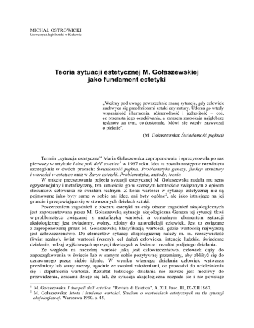 Teoria sytuacji estetycznej M. Gołaszewskiej jako