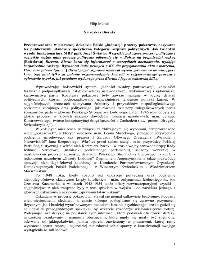 1 Filip Musiał Na rozkaz Bieruta Przeprowadzane w pierwszej