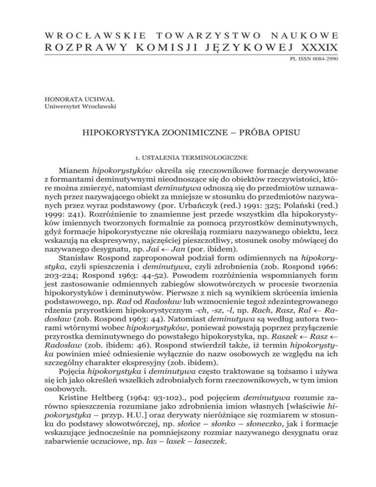 tego zagadnienia. Nie należy jednak zapominać, iż hipokorystyka zoonimiczne