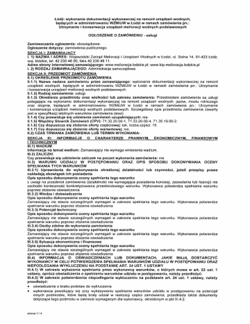 Łodź:wykonanie dokumentacji wykonawczej na remont urządzeri wodnych,