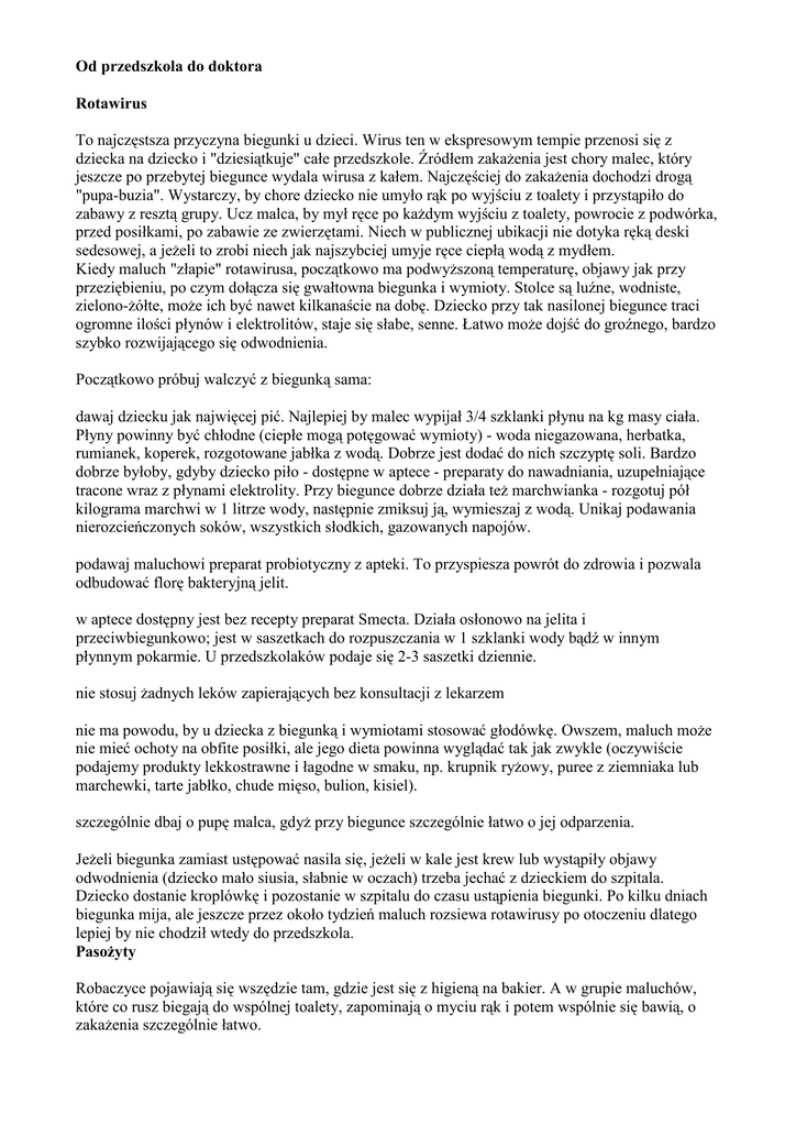 Od przedszkola do doktora Rotawirus To najczęstsza przyczyna
