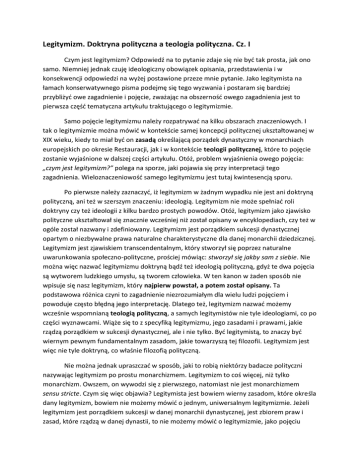 pierwsza częśd tematyczna artykułu traktującego o legitymizmie.