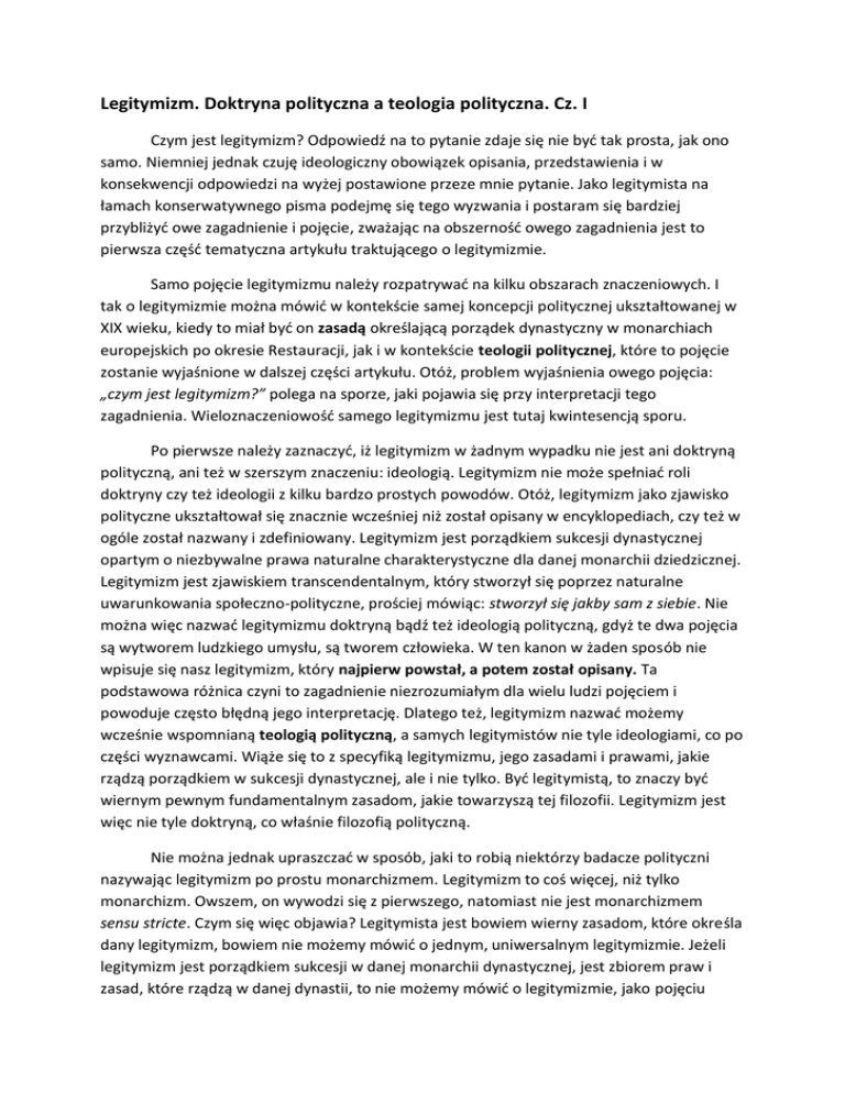 Legitymizm. Doktryna polityczna a teologia polityczna. Cz. I