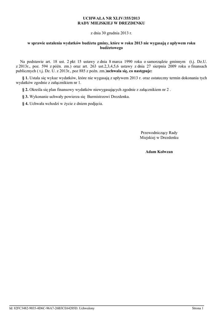 Uchwala Nr XLIV/355/2013 z dnia 30 grudnia 2013 r.