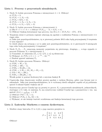 Lista 1. Procesy o przyrostach niezależnych. Lista 2. Łańcuchy